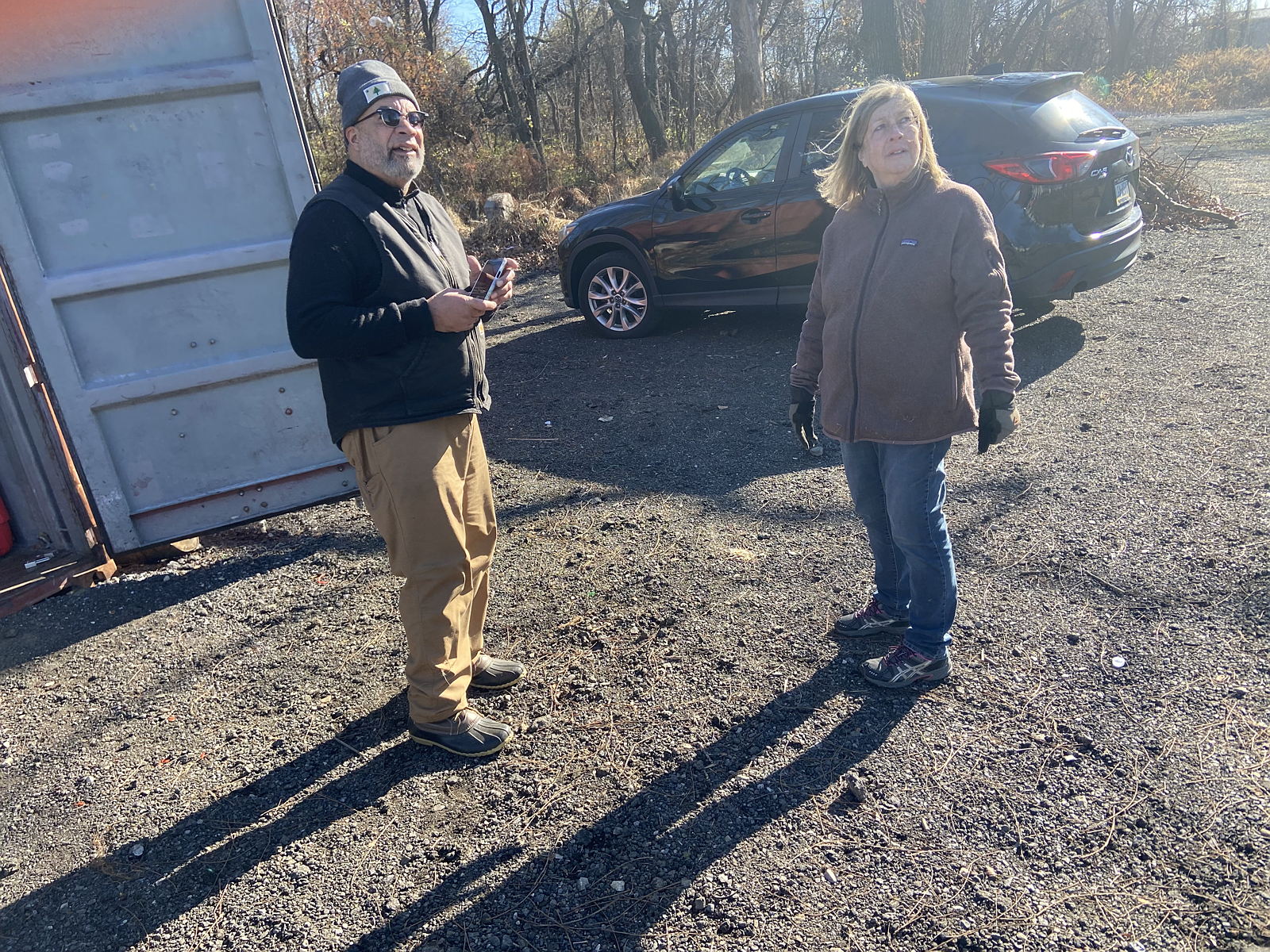Two dedicated volunteers working Saturday morning, Temperature 45 degrees!!!