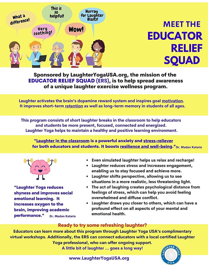 These leaders can start up a weekly laughter club at a school, hospital, community center, senior community, library, church space, park...